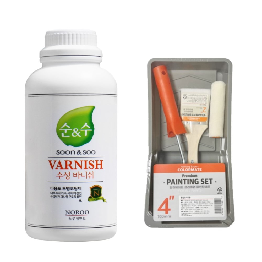 순앤수 수성바니쉬 목재 가구 코팅 투명 4인치 칼라메이트 풀세트