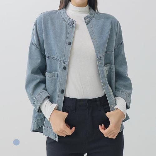 데님 카라 스냅 단추 밑단 밴딩 긴팔 자켓 (DP3JK006A)