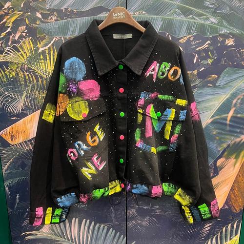 만화 의류 레트로 인쇄 데님 자켓 여성 가을 새로운 느슨한 대형 자켓 만화 캐주얼 탑 루즈 자켓