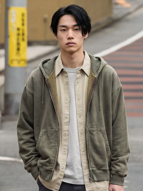[페플] 피그먼트 와플라이닝 후드 집업 올리브 SMHD1560