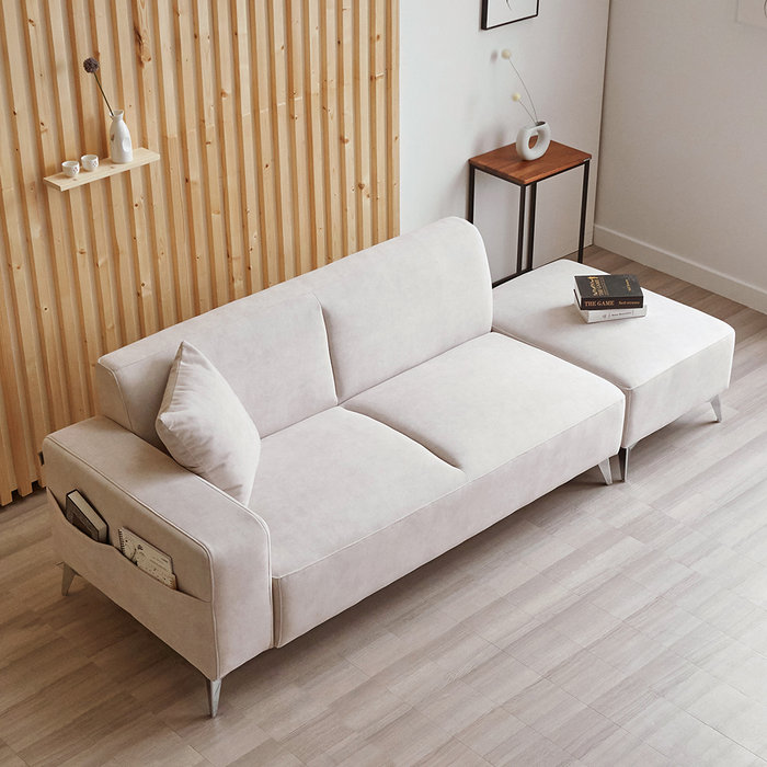 [롯데백화점]에싸 플레인 3.5인 스윙기능 리브 패브릭 소파+스툴
