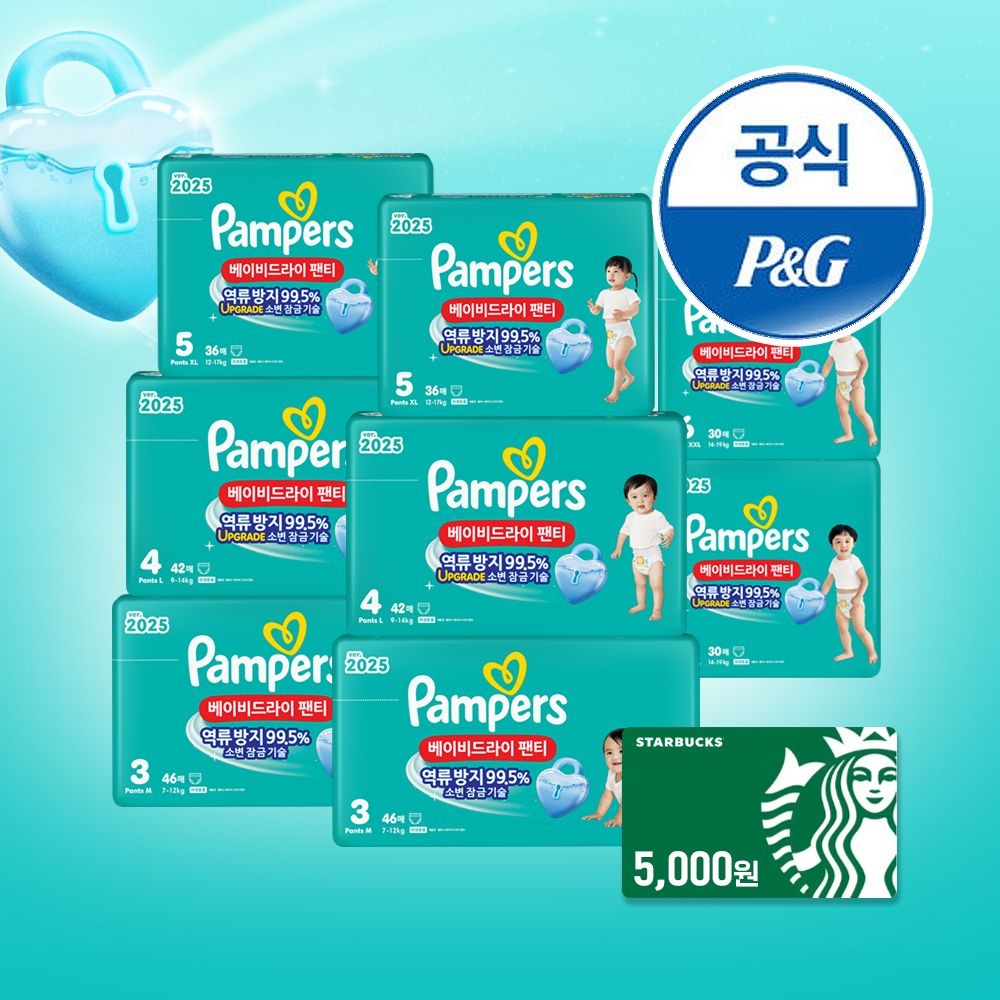 팸퍼스 2025 통기성우수 흡수력강화 베이비드라이 팬티형 기저귀 남녀공용 3단계 184매
