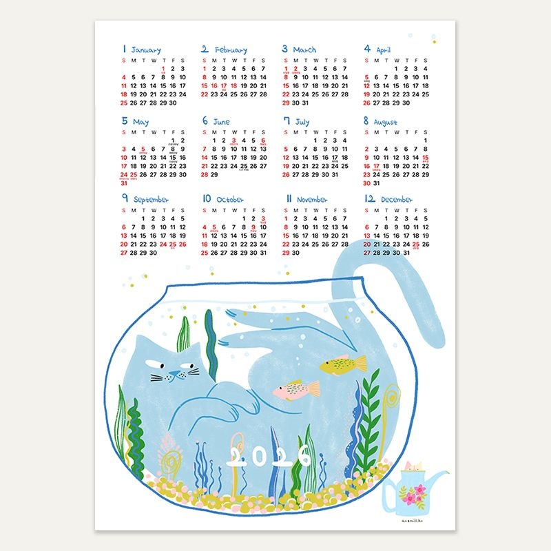 2024년 달력 캘린더 고양이 포스터 인테리어 벽걸이 달력