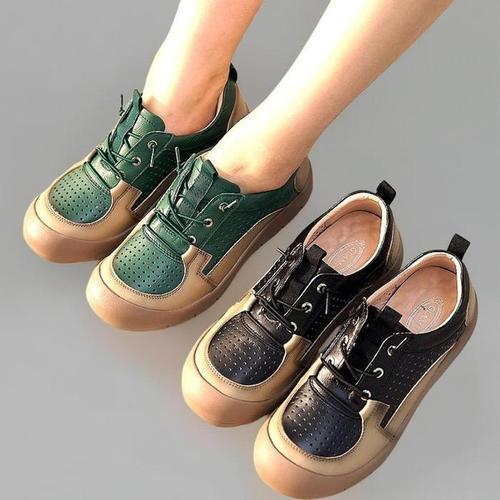 [신상오픈런]여성 독특한 투톤 펀칭 가죽 스니커즈 평탄화 (34325586)
