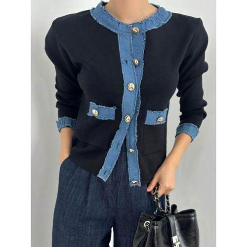 [디애이치]포니든 데님 골드 버튼 가디건 3color