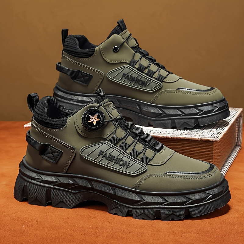 TEMU 남성용 부츠 스타일 신발 - 헤비듀티 올테레인 트랙션, 어퍼 & 고무 밑창, 올리브 그린/블랙 러그드 아웃도어 부츠, 캠핑, 작업용 - 로우탑 라운드 토 캐주얼 트레킹 스니커즈|트레킹화|남자운동화