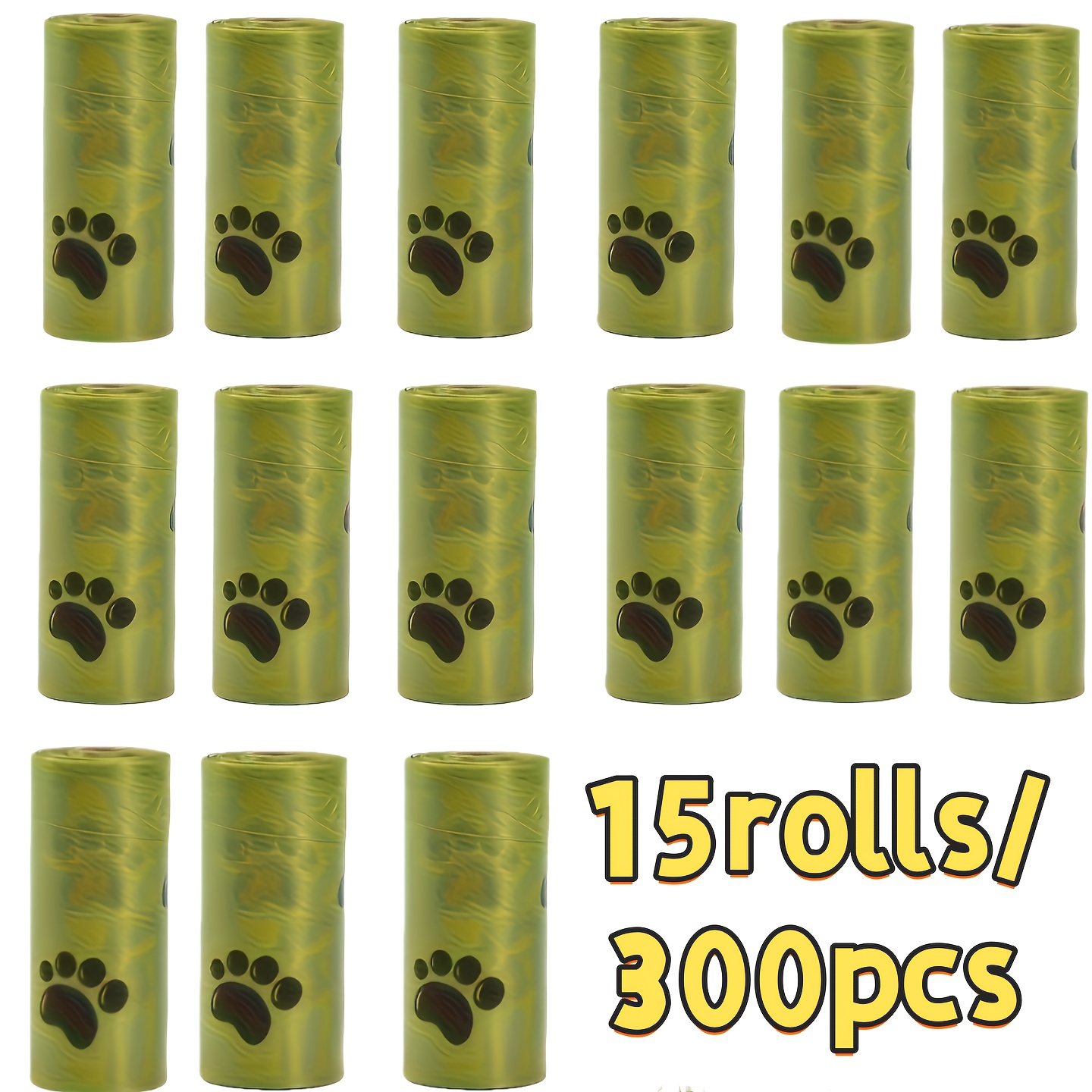 TEMU 15롤/300개입 튼튼한 애완동물 배변 봉투, 발톱 프린트 디자인 | 두꺼운, 누출 방지, 애완 동물 청소 및 야외 사용에 적합