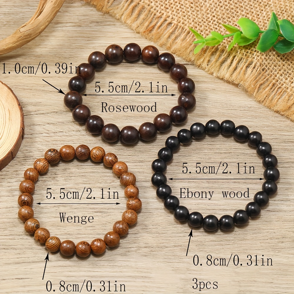 TEMU 3개 세트 목재 비즈 팔찌 - 수제 닭날개 비즈, 남녀공용 목재 비즈, 데일리 웨어 및 캐주얼/드레시한 행사용 DIY 목재 비즈