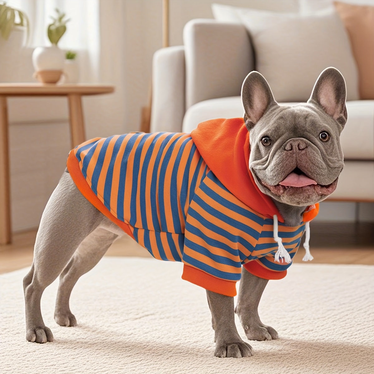 TEMU 1개 기본 애견 후드티, 소형견 및 중형견용 고급 가죽 라벨, 부드럽고 포근한 강아지 의류 (프렌치 불독용)