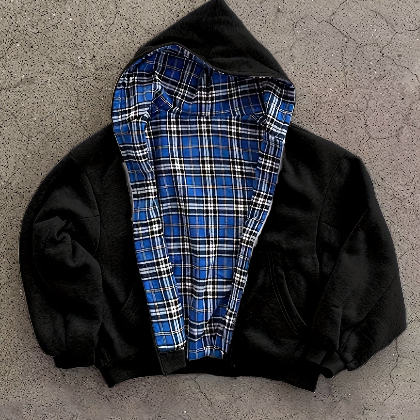 TEMU Y2K 레트로 패션 체크 후드티, 블루 체크 안감 블랙 후드티, 하라주쿠 빈티지 고딕 스타일 캐주얼 지퍼업 오버사이즈 리버스블레이드 후드티, 좋은 선택
