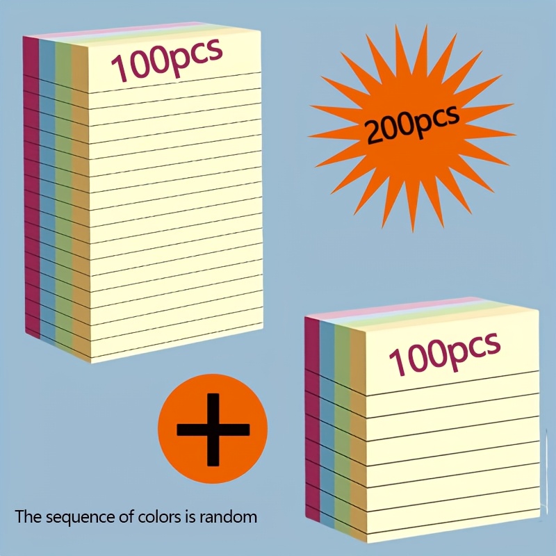TEMU 200매, 4색 스티커 메모, 메모 패드, 찢어지는 노트패드, 노트, 대형 노트패드, 오피스 문구 메모북, 학생용, 사무실, 가정, 학교에 적합