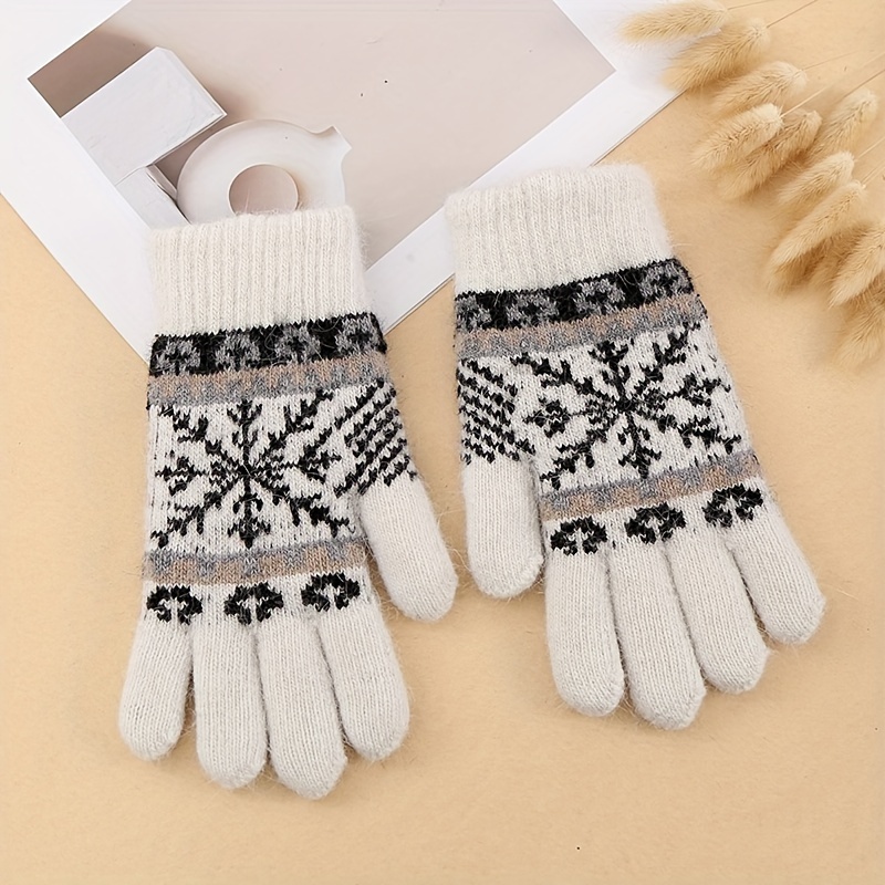 TEMU 여성용 크리스마스 눈꽃 장식 장갑 - 토끼털 & 울 보온 겨울 장갑, 스키용 방풍 탄력 커프, 손세탁 가능한 추위 방지 장갑, 야외 스포츠 및 휴일 축제용, 부드러운 질감, 추운 날씨용 액세서리