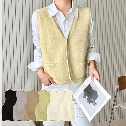[엄지척]여자 베이직 캐주얼 포켓 니트조끼 니트베스트 5컬러_19802329_667501