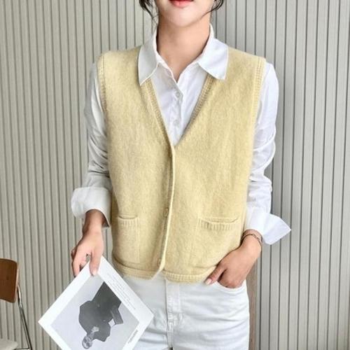 [엄지척]여성 포근한 V넥 니트 조끼 베스트 포켓 레이어드_20362935_667501