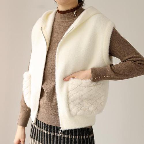 [신상오픈런]여성 후드 단추 니트 베스트 더블포켓 꽈배기 디자인