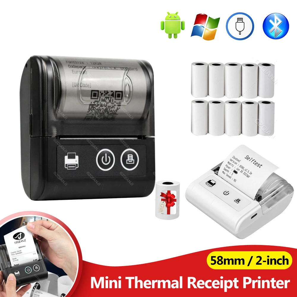 58mm 열전사 프린터 미니 블루투스 영수증 프린터 무선 모바일 청구서 티켓 인쇄 소형 비즈니스용 프린터