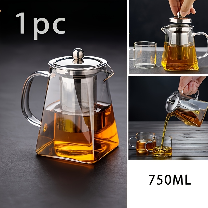 TEMU 1개 대형 유리 차 & 커피 포트 스테인리스 스틸 필터 포함 - 내열성 차 메이커, 다양한 사이즈 (18.5oz/25.3oz/32oz) 잎차, 허브 블렌드, 차 인퓨저 & 커피 끓이기 용기, 내구성 있는 유리 티팟, 선물용