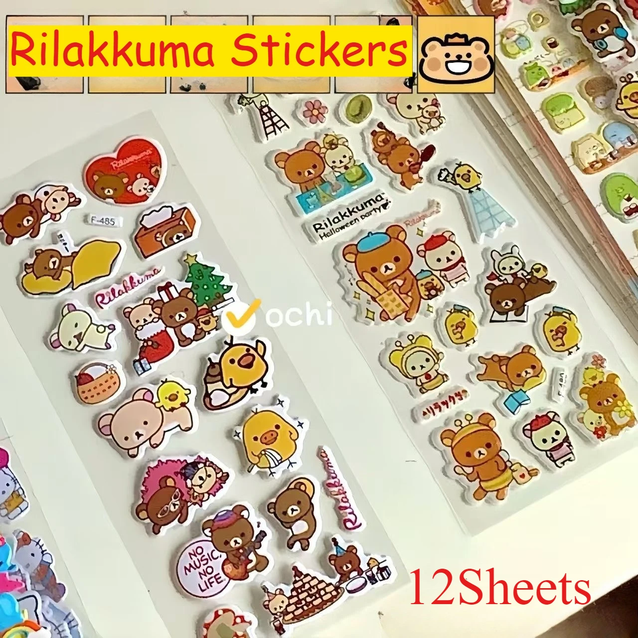 12 시트 만화 리락쿠마 버블 스티커 카와이 애니메이션 3 차원 3D 푹신한 벌크 스티커 키즈 소녀 DIY 장난감 스티커 선물