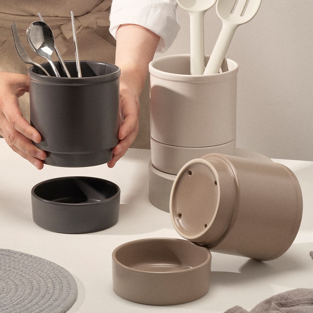 [RIZPICK]수저 꽃이 받침 도자기 대 키친프리 보관함 수저통