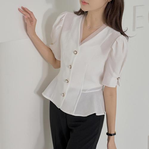 [로즈미] [55~66] 린느 페플럼 반팔 블라우스