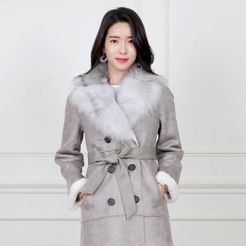 리얼 폭스퍼 칼라넥 페이크 롱 무스탕 코트(SBXMUU2)