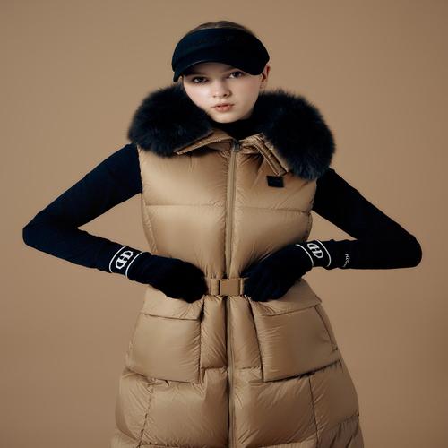 헤지스 골프 여성 골드 폭스퍼 롱 구스다운 베스트 (HWJU4D753GD)