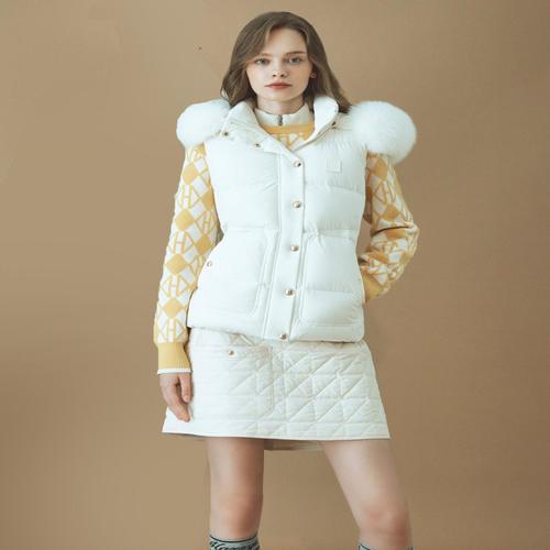 헤지스 골프 여성 24FW 가격인하아이보리 여성 폭스퍼 다운 베스트 HWJU4D754IV
