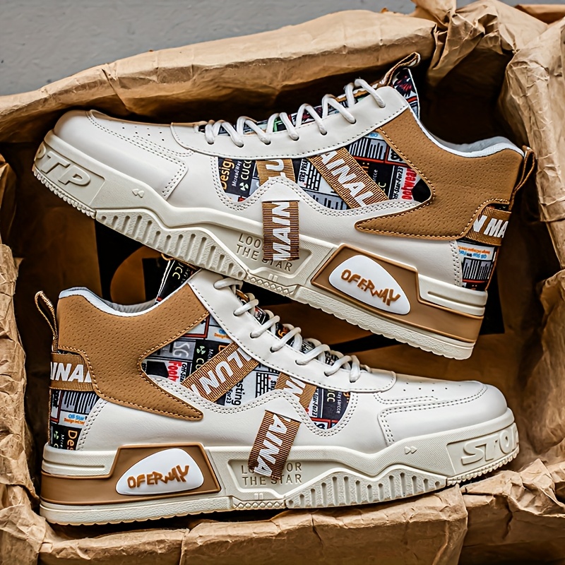 TEMU 1쌍의 랜덤 리본 글자가 있는 하이킹 부츠, 편안하고 스타일리시, 내구성과 가벼운 남성용 신발, 남성 야외 활동, 일상 여행 및 여행 코디에 적합|트레킹화