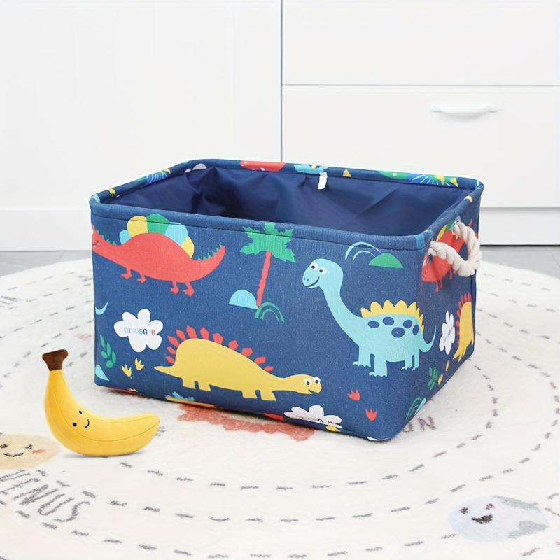 TEMU 대형 공룡 프린트 재질 보관용 바구니 - 옷, 장난감 및 더 많은 것을 위한 3층 접이식 정리함 - 꽃무늬가 있는 귀여운 만화 공룡 디자인 - 어린이 방이나 놀이 공간에 적합한 선반 바구니