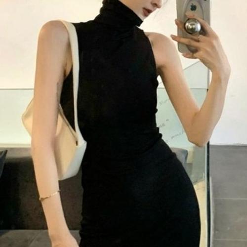 슬림핏 목폴라 미니 원피스 민소매 바디라인 드레스 데일리 여름 데이트룩 클럽 홀복