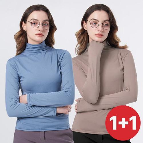 1+1 여성 폴라티 슬림핏 하이넥 긴팔 티셔츠 모달 반폴라티 2매입 봄 가을 여자 목폴라 긴팔티 YJW