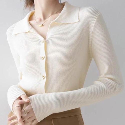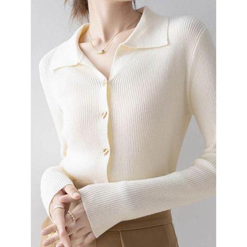 [모노무드]LMO 여성용 3톤 브이칼라폴로카라 금장 올데이 니트립 롱슬리브 니트가디건
