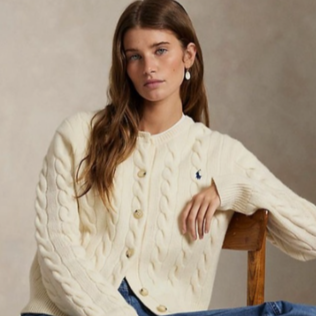 폴로랄프로렌 우먼 기본 꽈배기 라운드넥 니트가디건 여성용