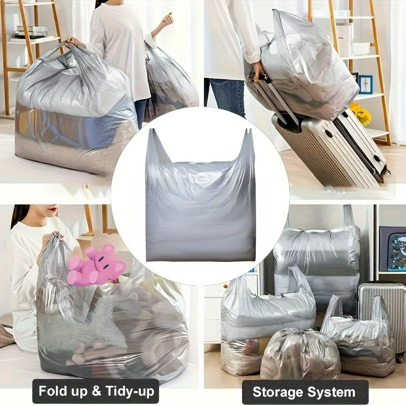 TEMU 20개 대형 헤비듀티 이사용 봉투, 쓰레기 분리, 식품 보관 및 이사 박스용 | 두꺼운 플라스틱 두꺼운 보관 봉투 손잡이 포함 | 다목적 가정용 옷, 쓰레기, 정리용 (내구성)