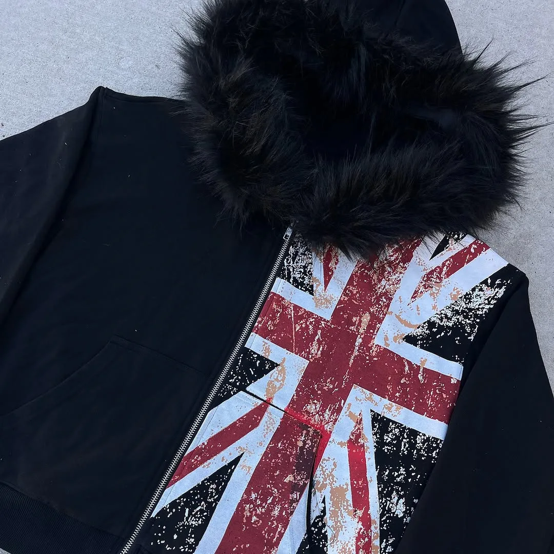 스트릿웨어 남성용 지퍼 후드, 밝은 측면 그래픽 프린트, 지퍼 후드 풀오버, 맨투맨 힙합 재킷, Y2K 코트 의류, 고스 탑
