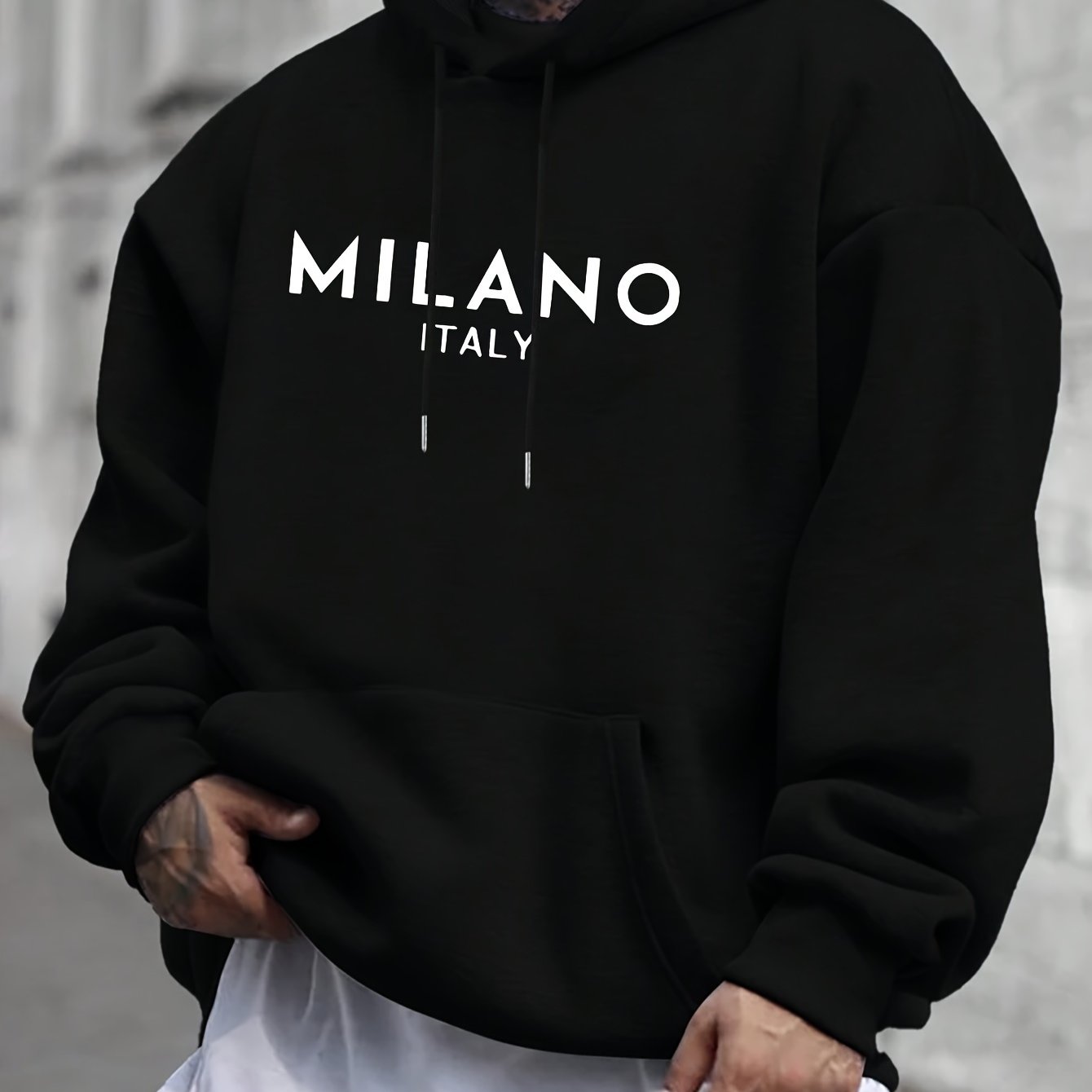 TEMU 1개 남성용 캐주얼 후드티 - 이탈리아 밀라노 그래픽 풀오버, 네이비 블루 후드 스웨트셔츠 (매일 및 정장용) - 세탁기 사용 가능, 플러스 사이즈