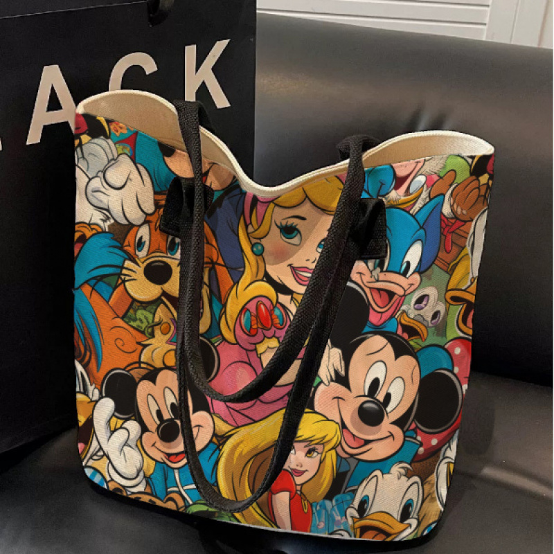 TEMU 스마일 미키 공주 혼합 색상 고급 토트백 | 창의적인 디자인 일러스트레이션 토트백 | 심플 레트로 엘레강스 다용도 숄더백 | 외출, 통근, 여행, 쇼핑, 선물용으로 적합한 대용량 핸드백