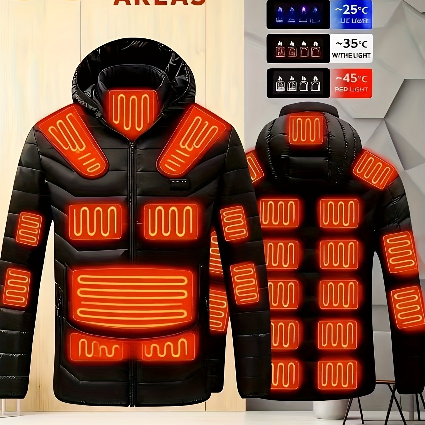 TEMU 남성용 겨울용 온열 재킷 (35구역 온열 시스템, USB 전원 보온성, 지퍼형 후드 코트) - 추운 날씨용 겉옷, 세탁기 사용 가능, 남성용 겨울 재킷, 남성용 고품질 겨울 재킷, 남성용 보온 겨울 재킷