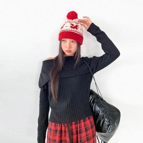 [신상오픈런]|CHC1D81|폼폼 노르딕 니트비니 크리스마스 연말룩 여자모자_19344535_597559