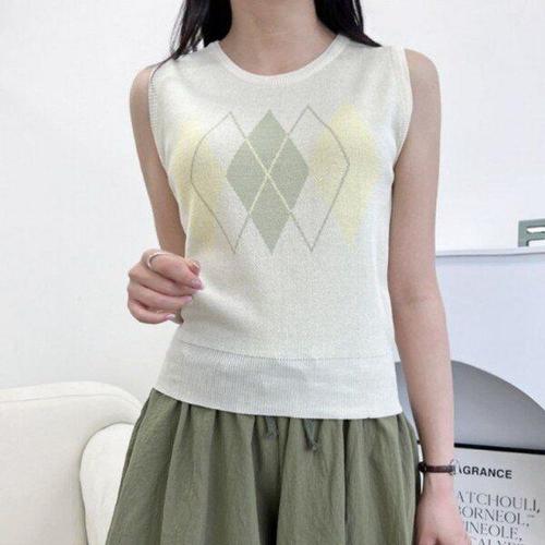 [모노무드]LMO 패턴 레이디스 니트웨어 패딩베스트 크루넥 풀오버조끼 캐주얼
