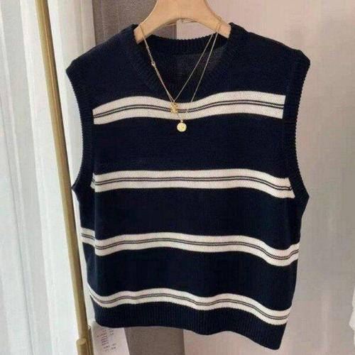 여자 세로줄풀오버 베스트탑 V넥 소매없음 패딩베스트 오버핏 버클 이지