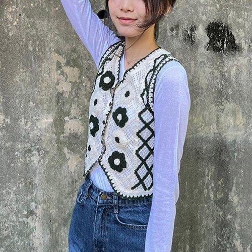 [모노무드]LMO 걸스 겨울철 숏기장핸드메이드 숏탑 베스트탑 뜨개탑 풀오버 패딩베스트 트렌디
