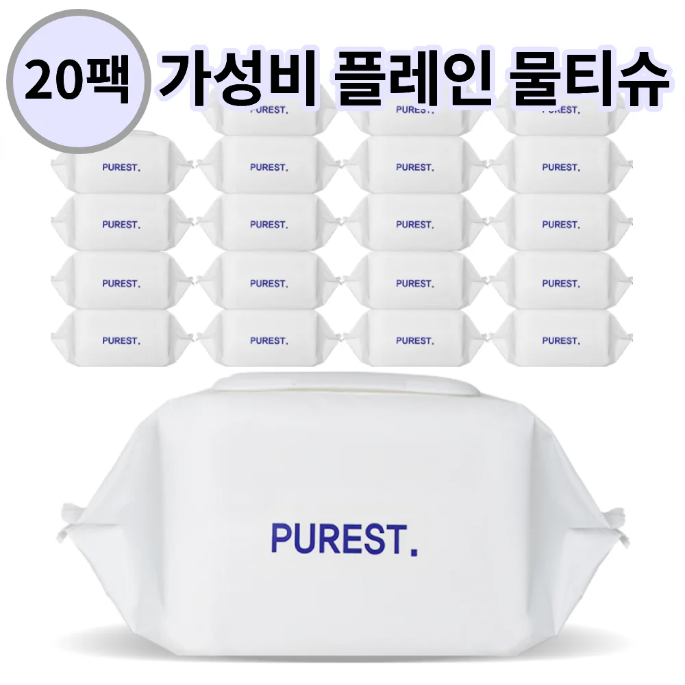 퓨어스트 라이트 초순수 플레인 아기물티슈 캡형 40평량 100매 20팩