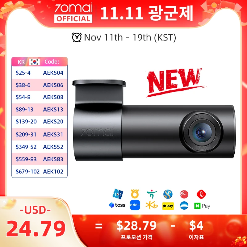 70mai 대시캠 M310 플러스 2K 1440P 야간 시야 F1.55 조리개 24시간 주차 모드 음성 제어 차량용 DVR 70mai M310 플러스 2K