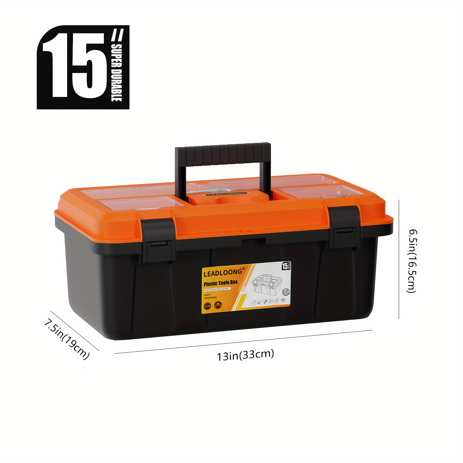 TEMU LEADLOONG 15인치 헤비듀티 플라스틱 공구함 - 자동차 수리, 정비, DIY 및 정리용 컴팩트 멀티펑션 보관함 (플라스틱)