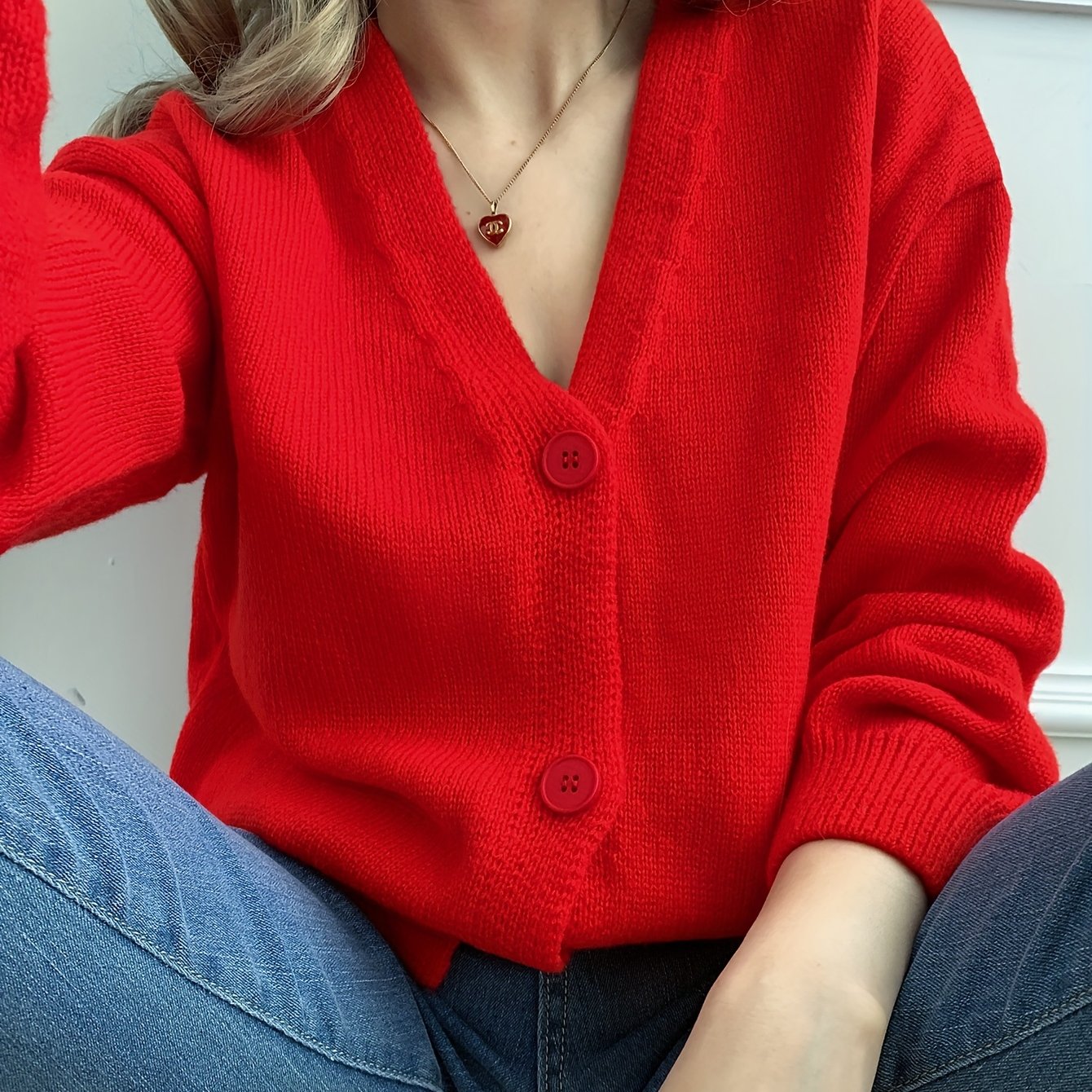 TEMU 가을 겨울 새해 레드 행운 우아한 다용도 V넥 가디건 [년년]