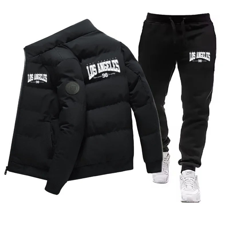 남성용 겨울 따뜻한 면 재킷+바지 세트 새로운 패션 캐주얼 스포츠 파카 다운 아웃도어 방풍 재킷 세트