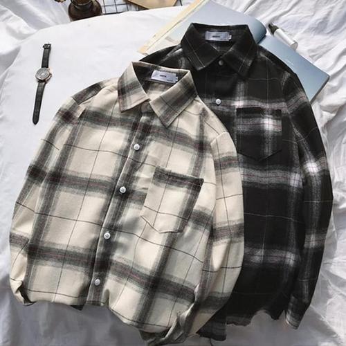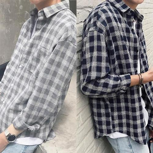 [HYIJTH1M_4B]긴팔 의류 체크셔츠 캐쥬얼 스트라이프