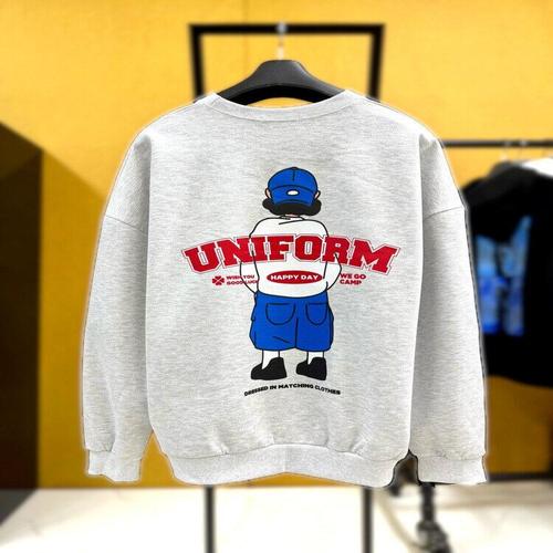 니까 남녀공용 해피어 프린팅 소매 배색 오버핏 긴팔 맨투맨
