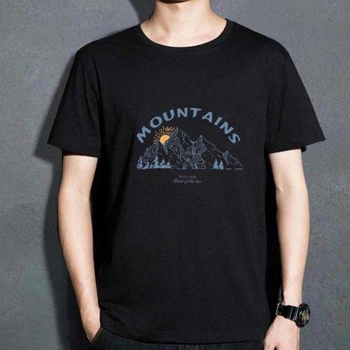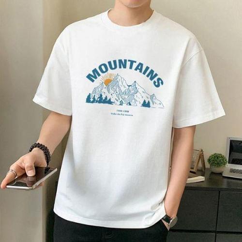 [셀러허브_여성트랜드패션]Rly 남자 여름 코디 마운틴 프린팅 면 코튼 반팔 티